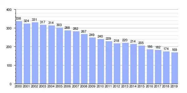 | Gráfica de evolución demográfica de Vilaboa entre 2000 y 2019 |