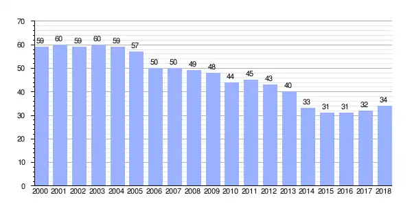 | Gráfica de evolución demográfica de Vilacoba entre 2000 y 2018 |