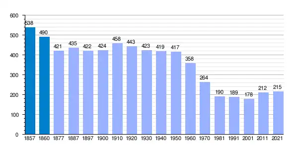 | Gráfica de evolución demográfica de Viladasens[2] entre 1857 y 2021 |