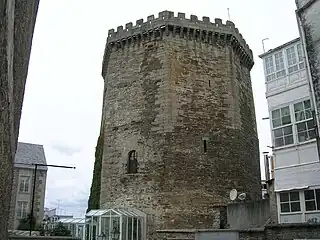 En la capital de la Tierra Llana destaca la torre del homenaje del antiguo castillo de los Andrade, de planta octogonal, transformada en la actualidad en Parador de Turismo.[34] A poca distancia del centro de la villa se halla el Pazo de Penas-Corbeiras, ligado primero a los Montenegro y más tarde a los señores de la casa de Penas Corbeiras. También destaca la iglesia parroquial de Santa María, sita en la plaza del mismo nombre, de estilo neoclásico, levantada en la segunda mitad del siglo XIX bajo la supervisión de Manuel Mato Vizoso.[35]