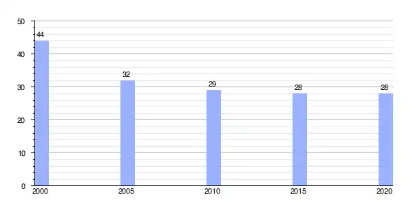 | Gráfica de evolución demográfica de Vilamerelle (parroquia) entre 2000 y 2020 |