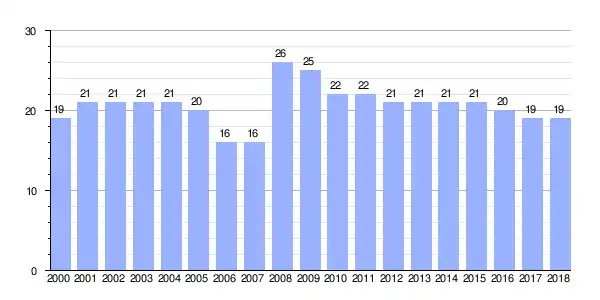 | Gráfica de evolución demográfica de Vilamoura entre 2000 y 2018 |