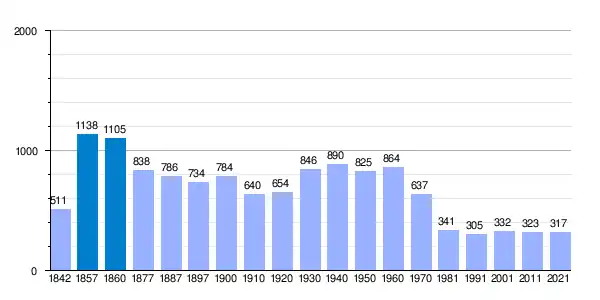Gráfica de evolución demográfica de Vilanova de Sau[4] entre 1842 y 2021