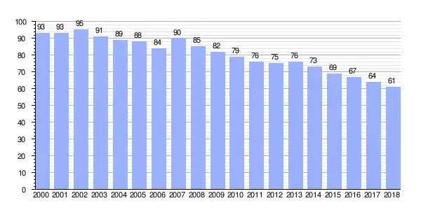 | Gráfica de evolución demográfica de Vilar entre 2000 y 2018 |