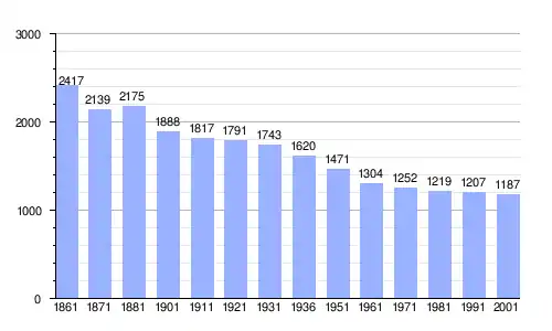 Gráfica de evolución demográfica de Villar Pellice entre 1861 y 2001