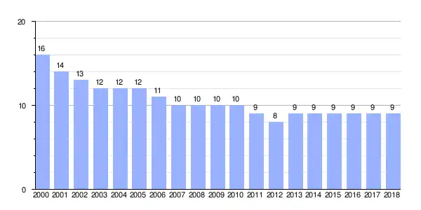 | Gráfica de evolución demográfica de Vilar de Suso entre 2000 y 2018 |