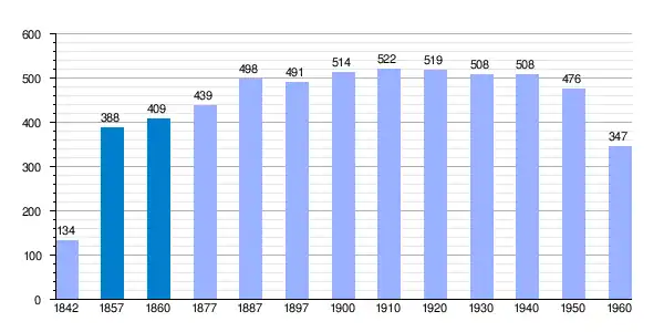 | Gráfica de evolución demográfica de Vilde[6] entre 1842 y 1960 |