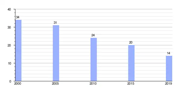 | Gráfica de evolución demográfica de Vilela entre 2000 y 2019 |