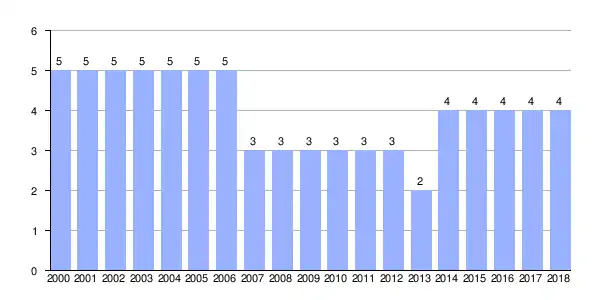 | Gráfica de evolución demográfica de Villaúje entre 2000 y 2018 |