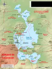 Es en 1410 que el tlatoani de Azcapotzalco Tezozómoc eleva el rango de la ciudad a señorío y le da como gobernante a su hijo Maxtla. Coyoacán fue una de las primeras ciudades tepanecas que cayeron en manos de los mexicas, las crónicas cuentan que Maxtla inició la guerra luego de que a los enviados mexicas a la fiesta en el templo de Coyoacán los humillara vistiéndolos y tratandolos como mujeres, tras lo cual se cerró el comercio entre las ciudades de México-Tenochtitlan y Coyoacán, luego de ser derrotados e incendiado su templo la ciudad de Coyoacán debió pagar tributo y entregar el producto de ciertas extensiones de tierras a los jefes guerreros y políticos mexicas que tomaron esas tierras como botín de guerra, para 1430 la Triple Alianza que derrota a Azcapotzalco deja en manos de los mexicas el destino de Coyoacán.[1]