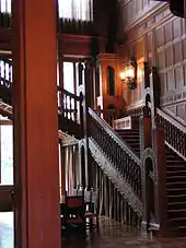 El complejo principal consta de la Wohnhaus ("residencia") de tres pisos, coronada por un belvedere, que originalmente contenía los conductos de aire acondicionado, y una "casa de huéspedes" también de tres pisos. Ambos edificios estaban conectados por una galería ajardinada, convertida en un edificio de dos pisos. La construcción se apoya sobre una estructura de hierro, una disposición muy moderna para la época. El estilo general del edificio original era un ejemplo muy austero de una villa de finales del periodo neoclásico; los cambios posteriores agregaron más ornamentación. El interior de las plantas baja y segunda del edificio principal está dominado por la sala principal de 400 metros cuadrados (478,4 yd²). Por el contrario, las habitaciones del primer piso (que no está abierto al público) se mantuvieron con su aspecto original relativamente sencillo.[3]