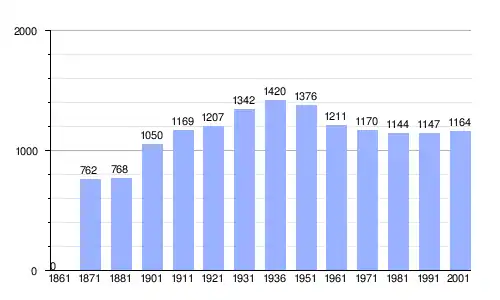 | Gráfica de evolución demográfica de Villa San Giovanni in Tuscia entre 1861 y 2001 |