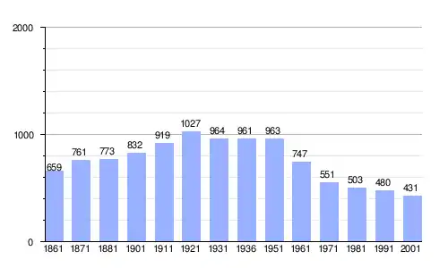 | Gráfica de evolución demográfica de Villa Sant'Angelo entre 1861 y 2001 |