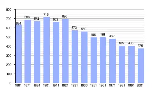 | Gráfica de evolución demográfica de Villa del Bosco entre 1861 y 2001 |