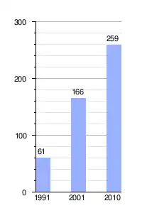 | Gráfica de evolución demográfica de Villa del Plata entre 1991 y 2010 |