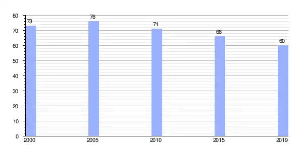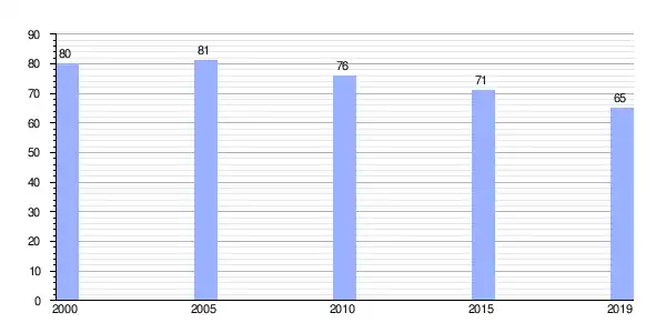 | Gráfica de evolución demográfica de Villabad (parroquia) entre 2000 y 2019 |