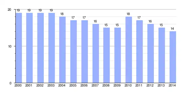 | Gráfica de evolución demográfica de Villacerán[2] entre 2000 y 2014 |
