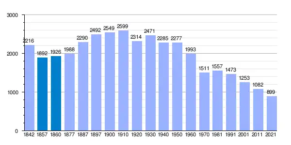| Gráfica de evolución demográfica de Villada[28] entre 1842 y 2021 |