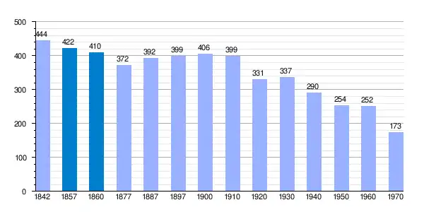 | Gráfica de evolución demográfica de Villadiezma[2] entre 1842 y 1970 |