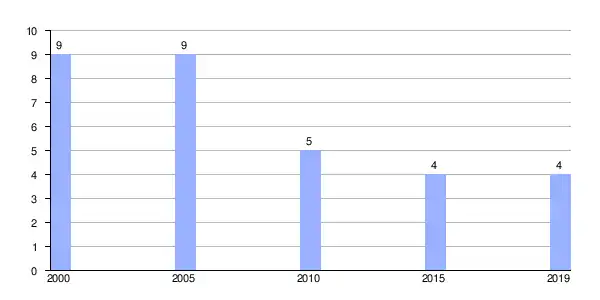 | Gráfica de evolución demográfica de Villafiz (parroquia) entre 2000 y 2019 |