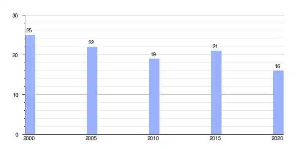 | Gráfica de evolución demográfica de Villafiz (parroquia) entre 2000 y 2020 |
