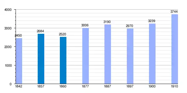 | Gráfica de evolución demográfica de Villajuan[2] entre 1842 y 1910 |