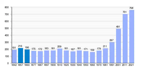 | Gráfica de evolución demográfica de Vilalba Sasserra[10] entre 1842 y 2021 |