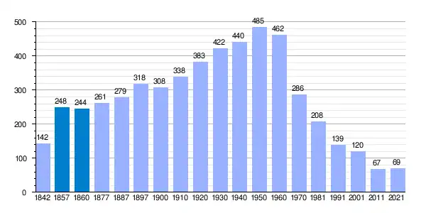 | Gráfica de evolución demográfica de Villalobar de Rioja[3] entre 1842 y 2021 |