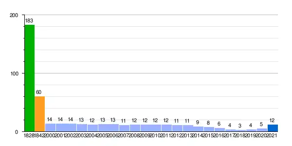 | Gráfica de evolución demográfica de Villalvilla de Montejo[1] entre 1828 y 2021 |