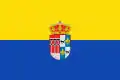 Escudo partido. Primero: de gules, un acueducto de dos órdenes, de plata, mazonado de sable y puesto sobre diez peñascos de lo mismo. Segundo: cuartelado; primero y cuarto con un lobo pasante de sable, en campo de plata; segundo y tercero, en campo de azur, una flor de lis de oro. Al timbre, Corona Real cerrada.Boletín Oficial del Estado nº 62 de 12 de marzo de 1988[9]