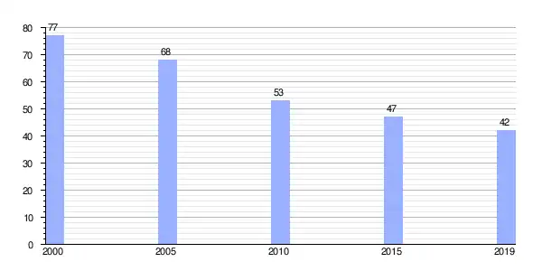 | Gráfica de evolución demográfica de Villamartín Pequeño (parroquia) entre 2000 y 2019 |