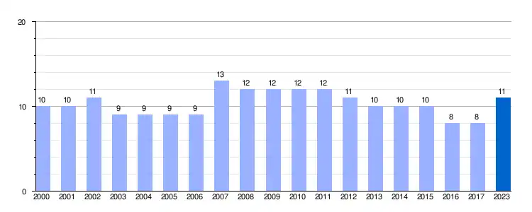 Gráfica de evolución demográfica de Villamezán entre 2000 y 2023