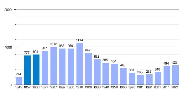 Población de derecho según los censos de población del INE.     Población de hecho según los censos de población del INE.Entre el Censo de 1857 y el anterior, crece el término del municipio porque incorpora a 225020 (Arueg) y 225074 (Cenarbe).[7]
