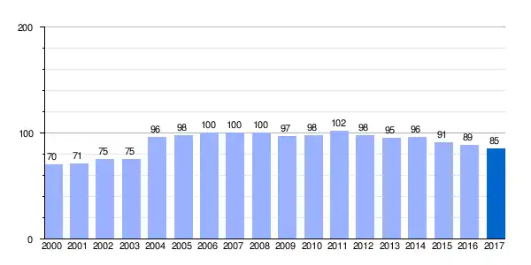 | Gráfica de evolución demográfica de Villanañe[5] entre 2000 y 2017 |