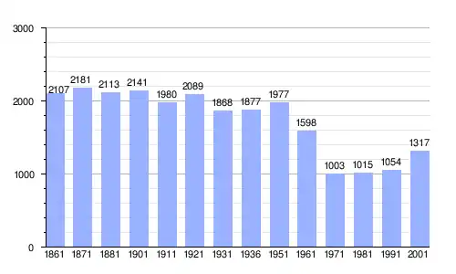 | Gráfica de evolución demográfica de Villanova del Sillaro entre 1861 y 2001 |