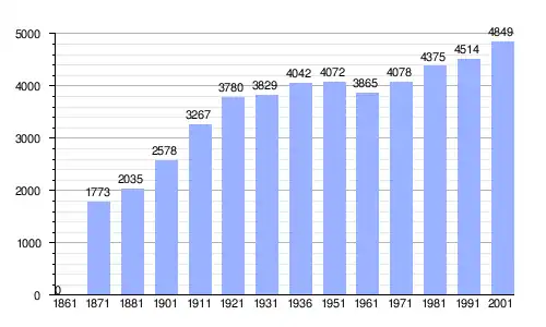 | Gráfica de evolución demográfica de Villanova di Camposampiero entre 1861 y 2001 |