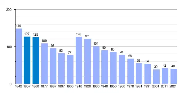 | Gráfica de evolución demográfica de Villanueva de Argecilla[2] entre 1842 y 2021 |