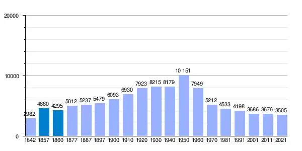 | Gráfica de evolución demográfica de Barcarrota[7] entre 1842 y 2021 |