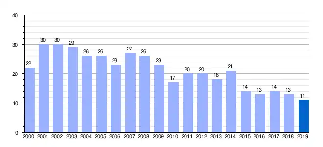 Gráfica de evolución demográfica de Villanueva de Cañedo[4] entre 2000 y 2019