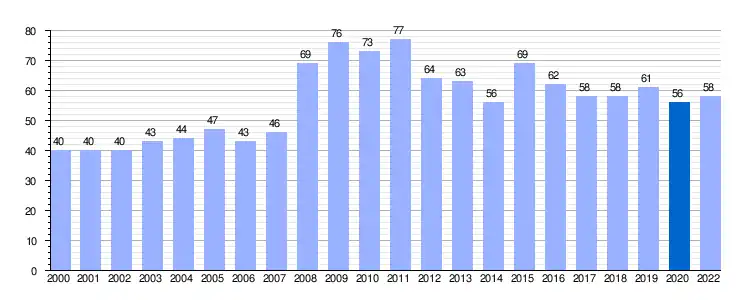 | Gráfica de evolución demográfica de Villanueva de la Condesa entre 2000 y 2022 |