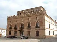 Constituye el elemento central del pueblo. En uno de los lados se encuentra el Ayuntamiento, edificio renacentista del siglo XVI. El antiguo pósito, al lado del Ayuntamiento y hoy Centro Médico, es del siglo XV o del siglo XVI. Destaca la torre del reloj de tres plantas. También se encuentra aquí la Posada Massó, de estilo renacentista, que constituye uno de los mejores exponentes de la típica posada castellana. En el otro extremo de la plaza se encuentra Villa Enriqueta, una casa palaciega del siglo XIX. El edificio, que según la inscripción de la fachada data de 1899 y es nombrado Villa Enriqueta, fue mandado construir por Jesús Casanova para su uso como vivienda propia. Y si en un principio fue palacio, luego pasó a ser hospital militar durante la guerra civil española y actualmente es propiedad de una familia cuyas viviendas se sitúan en torno a un patio central. Estilo artístico: esta es claramente historicista, muy al gusto de la época, mezclándose en ella elementos que recuerdan al Arte Mudéjar, ecos renacentistas e incluso modernistas, como refleja la ornamental utilización del hierro en la marquesina que cobija la puerta de entrada. Realizada en fábrica de ladrillo de dos colores colocados en su mayoría de forma decorativa creando motivos cruciformes, florales, etc., decorando el remate almenado sobre la cubierta del volumen inferior del edificio, los arcos de medio punto de los cinco balcones del primer piso y de las diez ventanillas pareadas del segundo. También de ladrillo, el volumen que remata el edificio, de planta rectangular a modo de torreón apaisado y cubierto a cuatro aguas, parece ser una especie de galería o pasillo cubierto cuyas paredes se encuentran horadadas por ventanas de arcos rebajados y arquillos menores de medio punto.