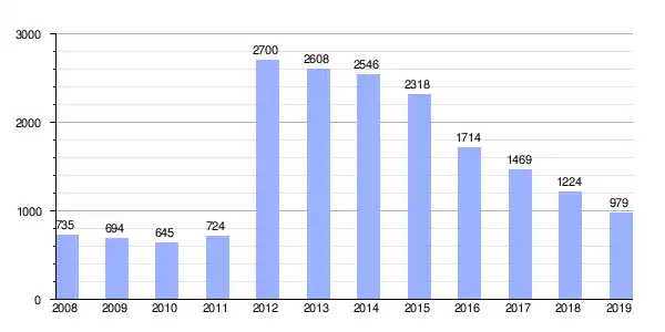| Gráfica de evolución de Deuda viva del Ayuntamiento de Villanueva del Rosario entre 2008 y 2019 |