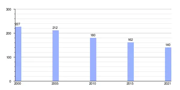 Gráfica de evolución demográfica de Villapedre entre 2000 y 2021