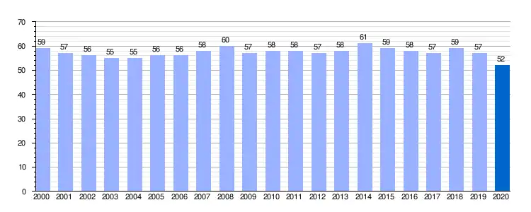 | Gráfica de evolución demográfica de Villaproviano entre 2000 y 2020 |