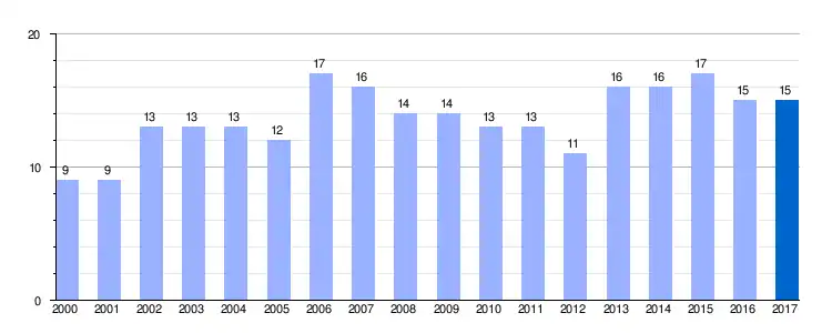 | Gráfica de evolución demográfica de Villar de Corrales entre 2000 y 2017 |