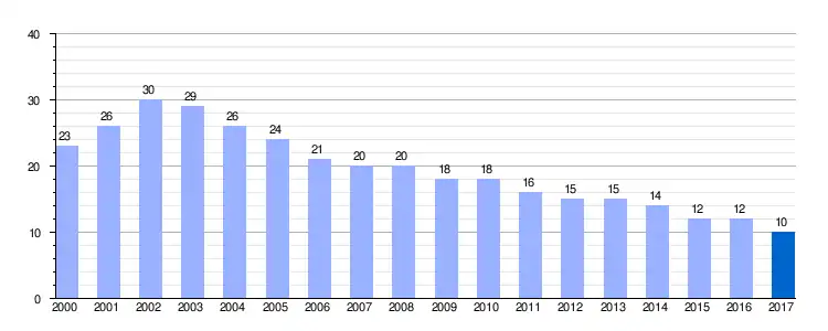 | Gráfica de evolución demográfica de Villar de Omaña entre 2000 y 2017 |