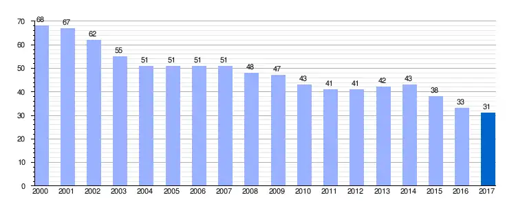 | Gráfica de evolución demográfica de Villar del Águila entre 2000 y 2017 |
