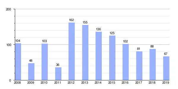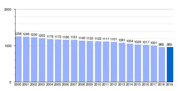 | Gráfica de evolución demográfica de Villardompardo[1] entre 2000 y 2019 |