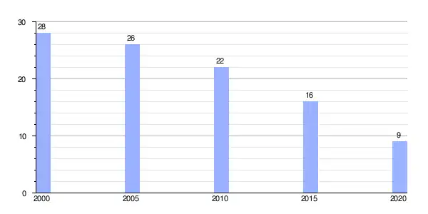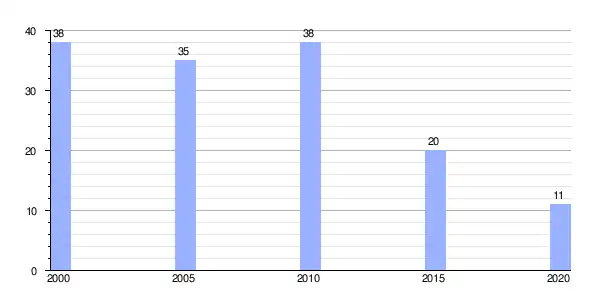 | Gráfica de evolución demográfica de Villarjuán (parroquia) entre 2000 y 2020 |