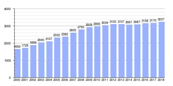 Gráfica de evolución demográfica de Vilarrodís entre 2000 y 2018